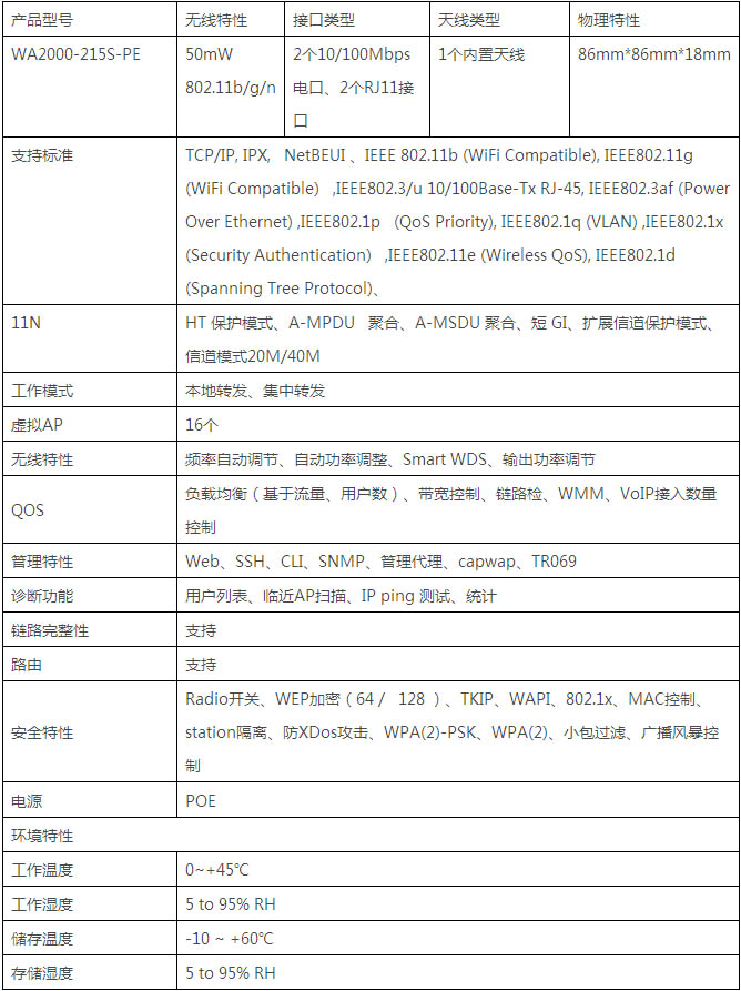 MyPower WA2000-215S-PE是單頻單模產(chǎn)品,工作頻段為2.4GHz,支持WAPI功能,符合IEEE 802.11b/g/n標(biāo)準(zhǔn),支持 MIMO技術(shù),屬于50mW b/g/n室內(nèi)內(nèi)置天線(xiàn)入墻式產(chǎn)品。